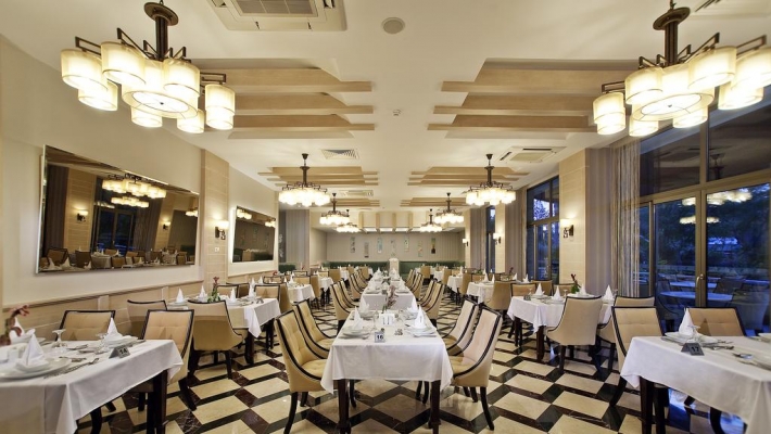 restaurantul principal, meniu dietetic, meniu vegetarian, 2 restaurante a la carte (turcesc, italian – cu programare – contra cost), 6 baruri, 2 piscine exterioare, piscina interioara, 5 tobogane (2 cu coborare in mare), cabinet medical, centru SPA, coafor, lant de magazine , spalatorie , 2 sali de conferinte (100-400 persoane).